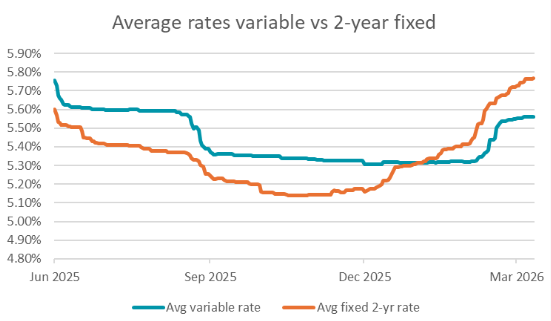 As a result, the average 2-year fixed rate is now 0.21 percentage points higher than the average variable rate, a noticeable change from the start of the year when the average fixed and variable rates were on par with each other.