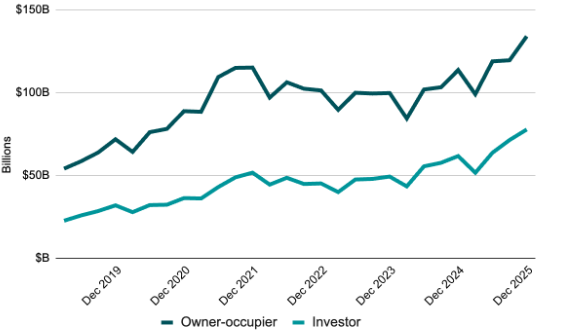 | Owner-occupier | $134.1 billion – record high | +$14.5 billion +12.1% |