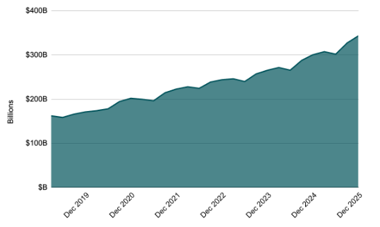 | $343.5 billion – record high | +$16.2 billion +4.9% |